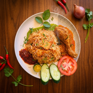 This dish is perfect for those seeking an elevated version of a Malaysian classic. Ideal for lunch or dinner, Mee Siam Rendang Chicken delivers comfort, warmth, and complexity in every serving. Whether dining alone or sharing with friends, it transforms a simple meal into a memorable culinary experience.